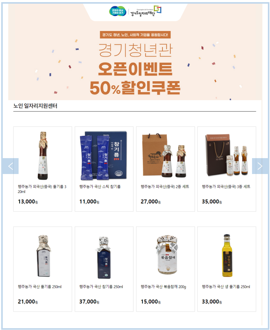 - 경기도 청년 상인들의 상품을 특별한 가격으로 쇼핑 할 수 있는 '경기청년관'