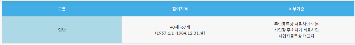 ● 참여자격 : 서울시 거주 40~67세 시민(모집공고별 요건확인 필)