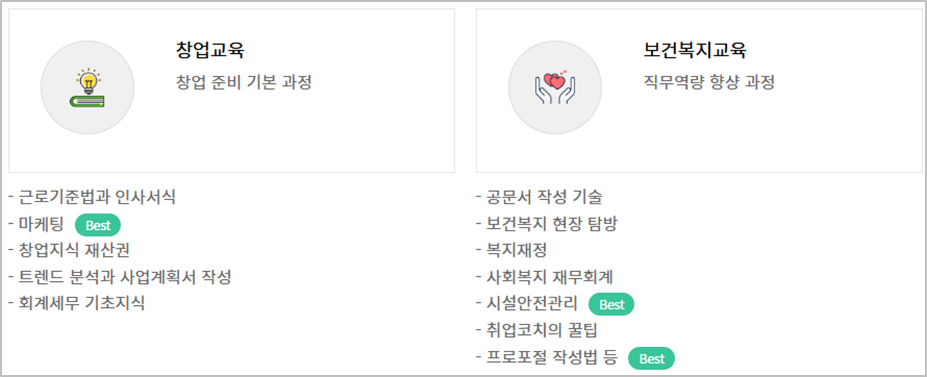 노인분들이 자신의 경험과 기술을 활용하여 창업을 할 수 있도록 지원하는 프로그램을 운영합니다. 이를 통해 노인분들이 새로운 일자리를 창출하고 경제적인 활동에 참여할 수 있습니다. 시니어 분들이 자신의 사업을 시작하고 관리하는 데 필요한 노하우를 습득하고 지원받을 수 있도록 돕는 창업 교육프로그램이 있습니다. 시니어 분들이 창업에 필요한 기본적인 지식과 노하우를 습득할 수 있는 교육 프로그램을 제공합니다. 이는 사업 기획, 마케팅 전략, 재무 관리 등에 대한 교육을 통해 시니어 분들이 창업을 준비하고 실행할 수 있도록 돕는 것을 목적으로 합니다.