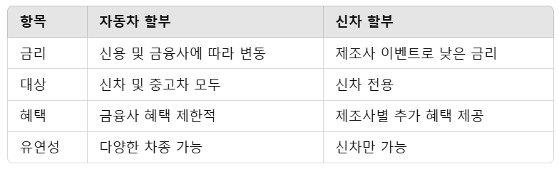 자동차 할부와 신차 할부는 차량 구매 시 자금 부담을 줄이는 대표적인 금융 상품입니다.
