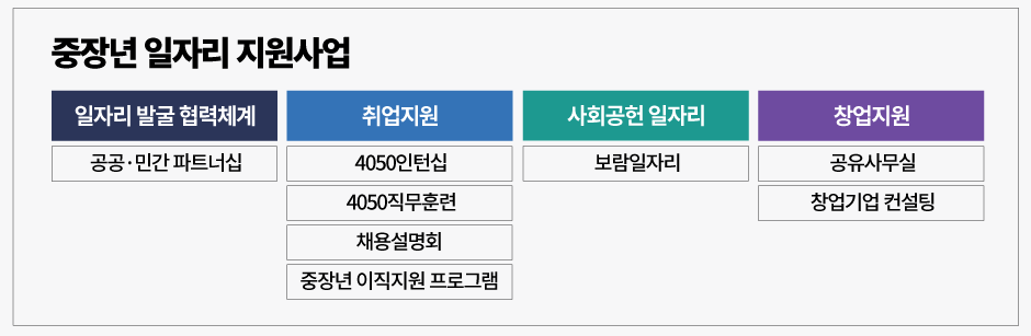 - 목표: 4050 중장년 이직지원 사업 추진